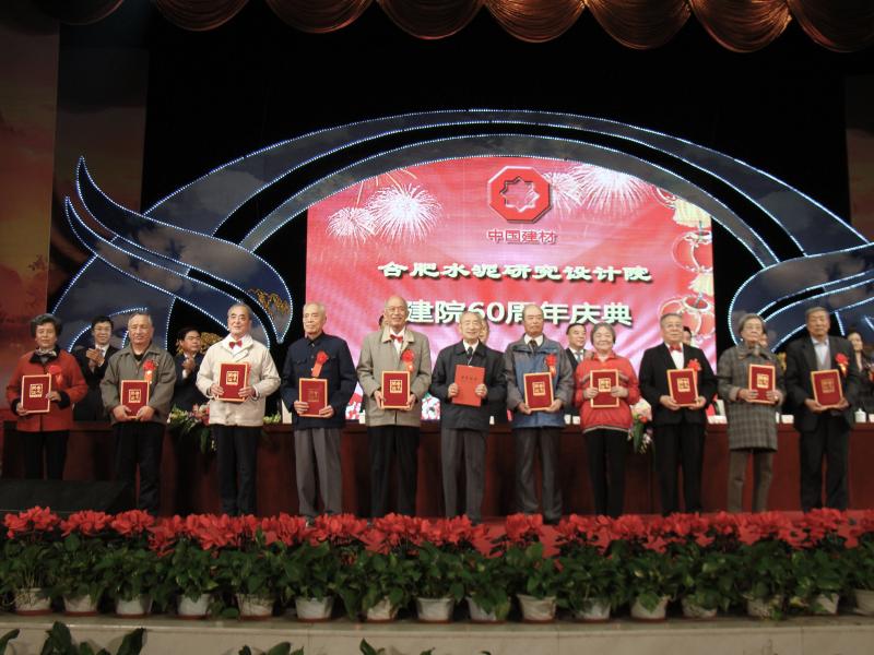 2010年10月30日,為慶祝建院60周年,合肥院舉行了盛大的慶典大會,并邀請了集團和行業內多位領導蒞臨參會。上圖為建材聯合會喬龍德會長、中建材集團宋志平董事長參觀合肥院產業園;下圖為在慶典大會上,為表彰在合肥院60年的發展歷程中嘔心瀝血,做出無私奉獻的老同志,大會為42位50年以上院齡的老同志頒發了榮譽證書。